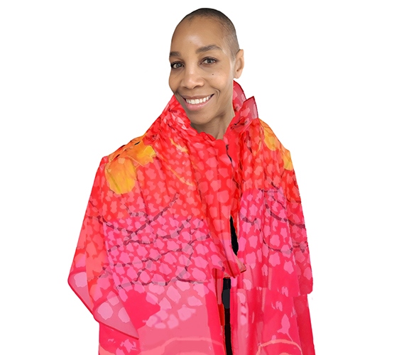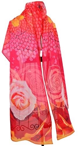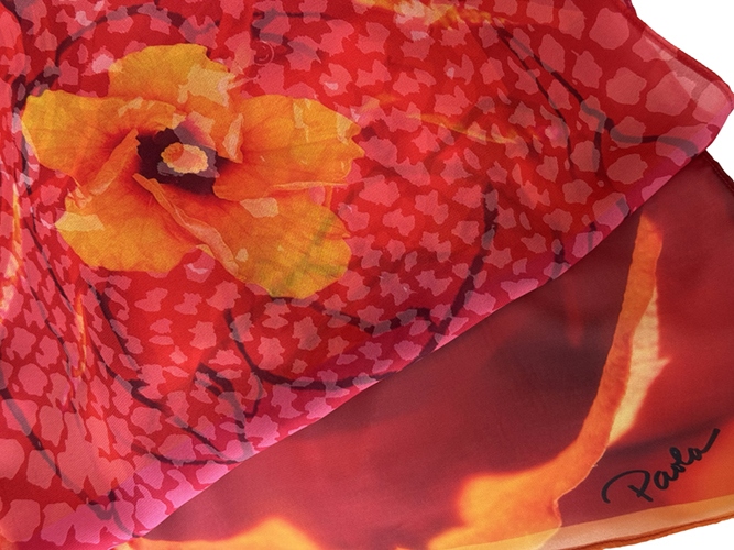 Limited edition scarf. Digital print on vegan silk. Easy care, hand wash, line dry.
